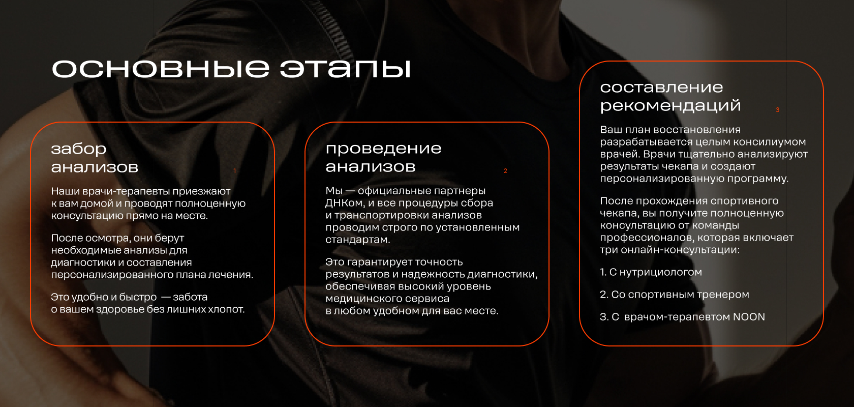 После прохождения спортивного чекапа, вы получите полноценную консультацию от команды профессионалов, которая включает три онлайн-консультации: